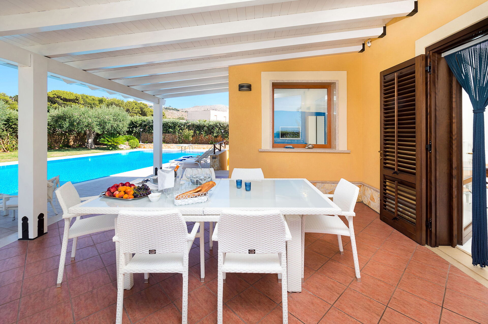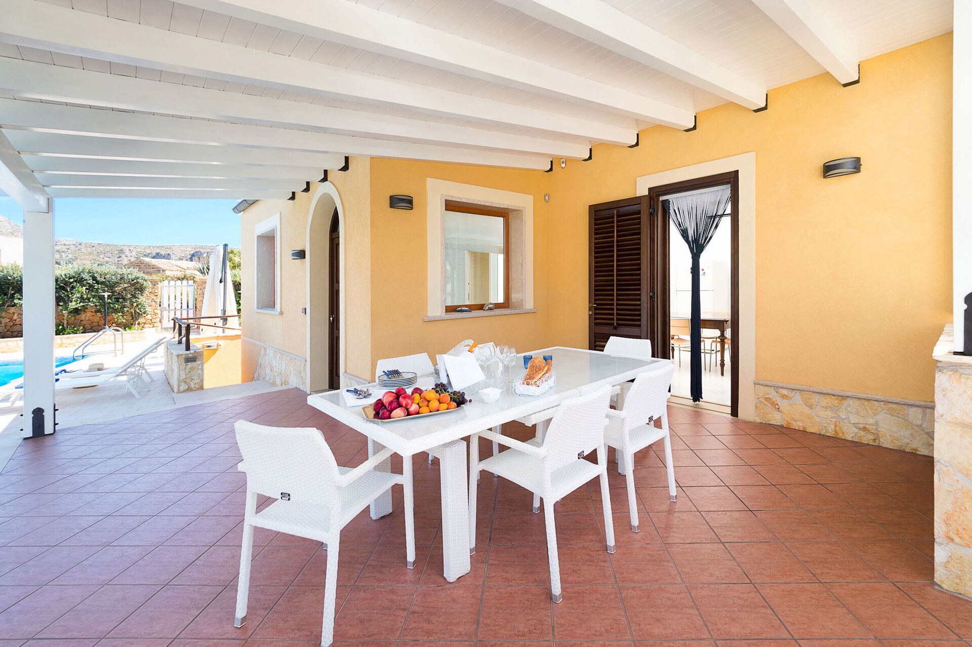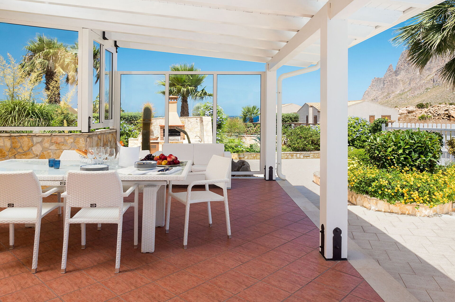 Beautiful villa with private swimming pool just a few steps away from the beach at Cornino, a well-known seaside town at the foot of Monte Cofano near Trapani. The recently built property is an interesting architectural structure on floors leading downwards. The living area on the ground floor includes a bright living room, a well-equipped kitchen and a bathroom. From here a staircase leads to a lower floor with three cosy bedrooms and two more bathrooms. The elegant interior, equipped with all modern comforts and conveniences, blends in perfectly with the well-kept exterior with a magnificent swimming pool, spacious sunny terraces with dining area and barbecue, framed by a little garden. Ideal for families or small groups of friends looking for a relaxing holiday spent outdoors with the scents of the sea. Afrodite is also the perfect base for exploring the wonders of western Sicily: from the nearby nature reserves of Monte Cofano and Lo Zingaro, to the medieval village of Erice, the historic centre of Trapani, the impressive temple of Segesta, the white salt pans of Marsala and the Egadi archipelago.