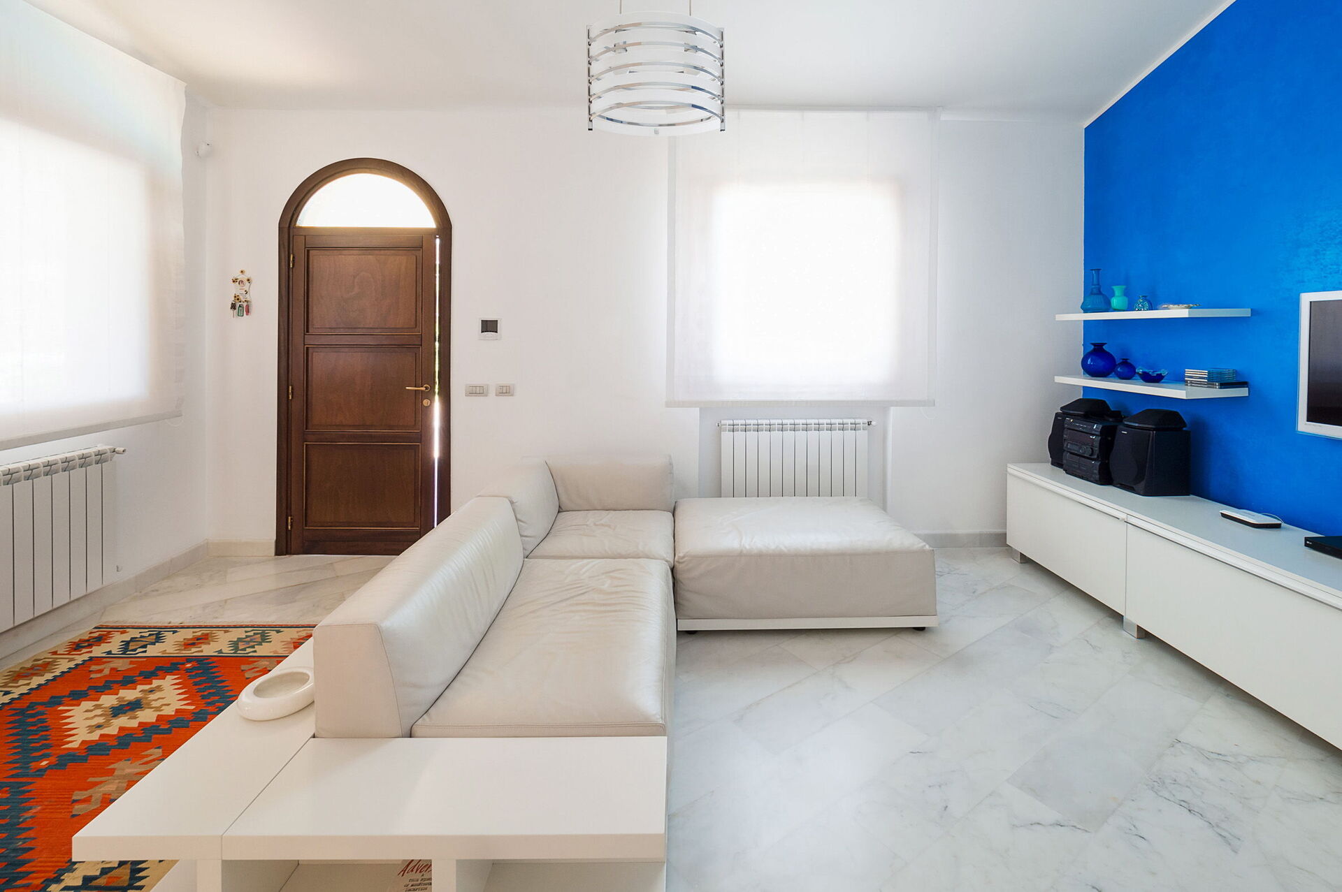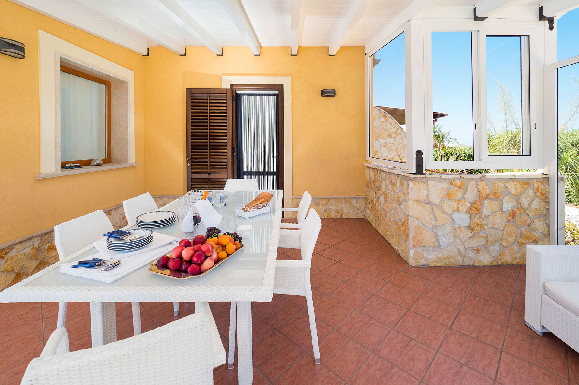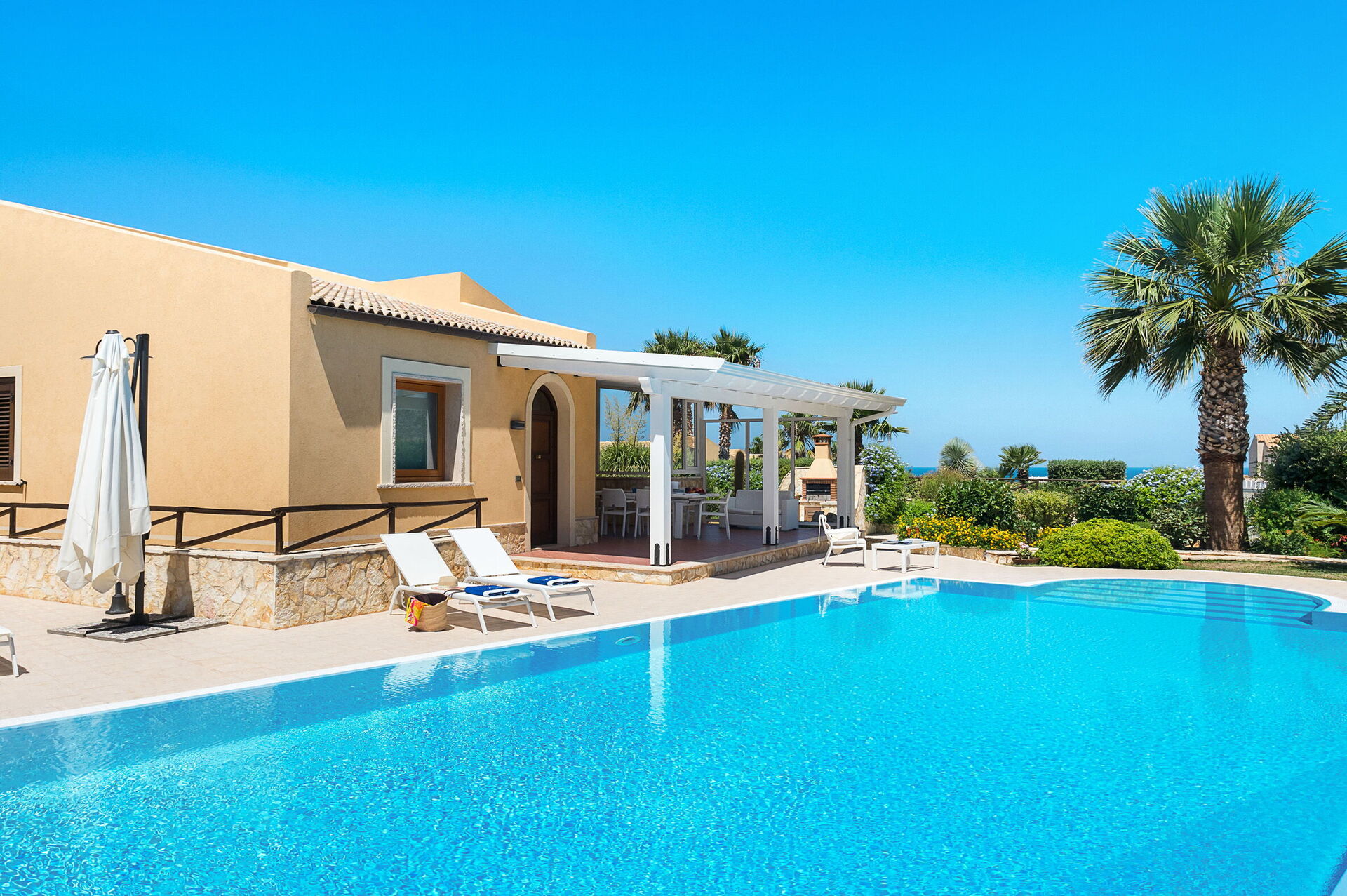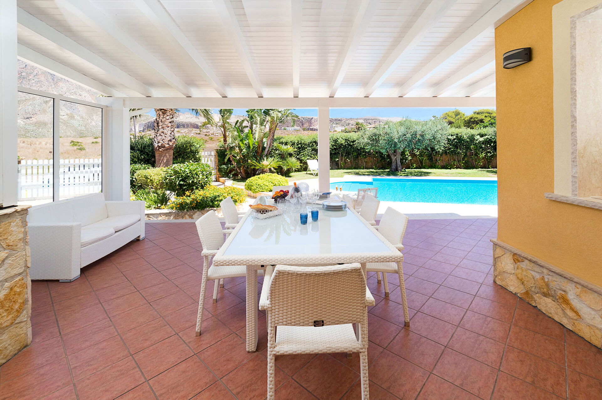 Beautiful villa with private swimming pool just a few steps away from the beach at Cornino, a well-known seaside town at the foot of Monte Cofano near Trapani. The recently built property is an interesting architectural structure on floors leading downwards. The living area on the ground floor includes a bright living room, a well-equipped kitchen and a bathroom. From here a staircase leads to a lower floor with three cosy bedrooms and two more bathrooms. The elegant interior, equipped with all modern comforts and conveniences, blends in perfectly with the well-kept exterior with a magnificent swimming pool, spacious sunny terraces with dining area and barbecue, framed by a little garden. Ideal for families or small groups of friends looking for a relaxing holiday spent outdoors with the scents of the sea. Afrodite is also the perfect base for exploring the wonders of western Sicily: from the nearby nature reserves of Monte Cofano and Lo Zingaro, to the medieval village of Erice, the historic centre of Trapani, the impressive temple of Segesta, the white salt pans of Marsala and the Egadi archipelago.