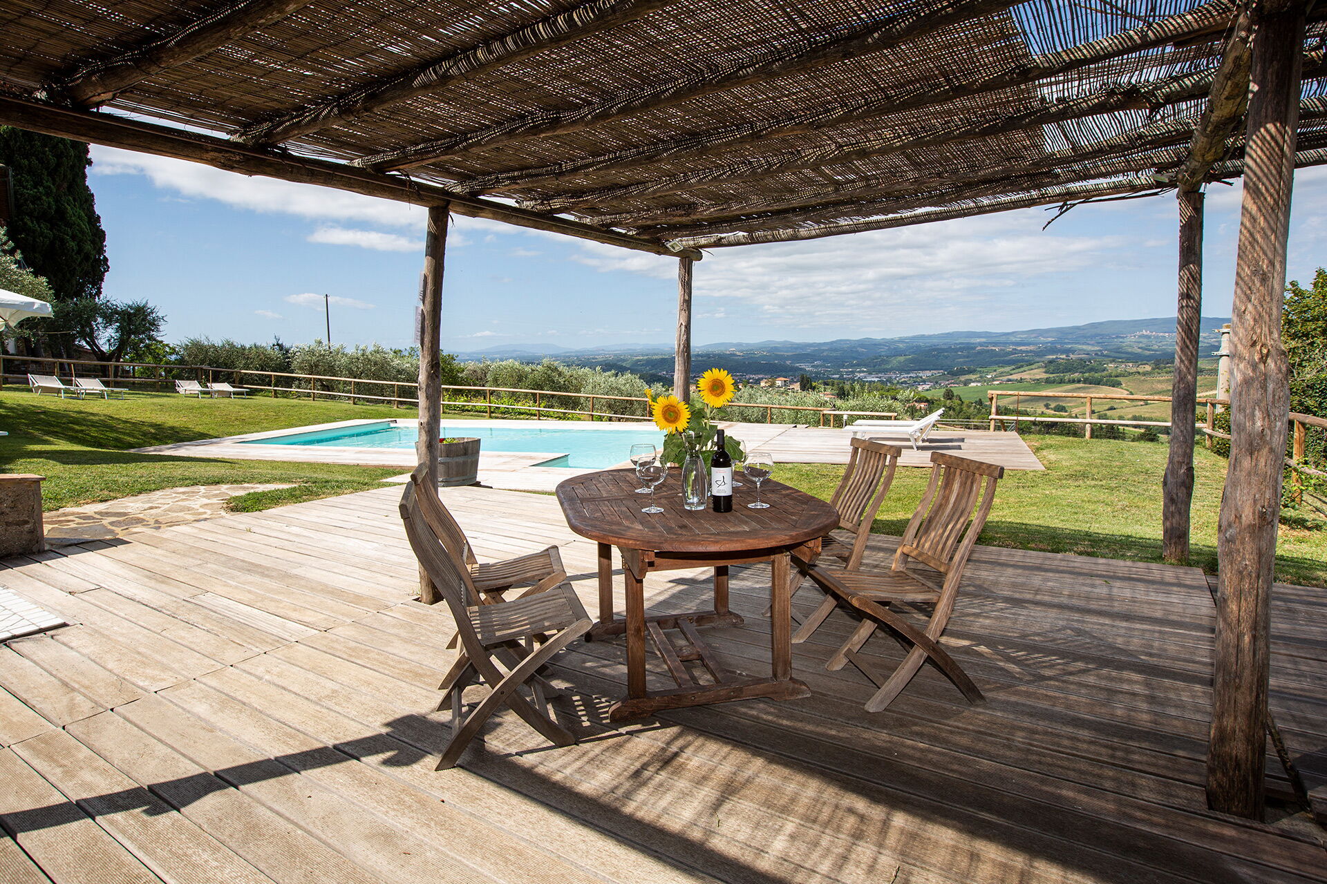 Arturo/Lefonti is an excellent location with a magnificient view to all sides but especially at the swimming pool. Quiet and surrounded by vineyards and Olive trees.We hired the house with 3 bedrooms for two weeks: good facilities. Very friendly manager and other personal.. Lefonti is a good starting point for visiting Siena, Florence, San Gimignano, Volterra. We recommend ARTURO warmly.