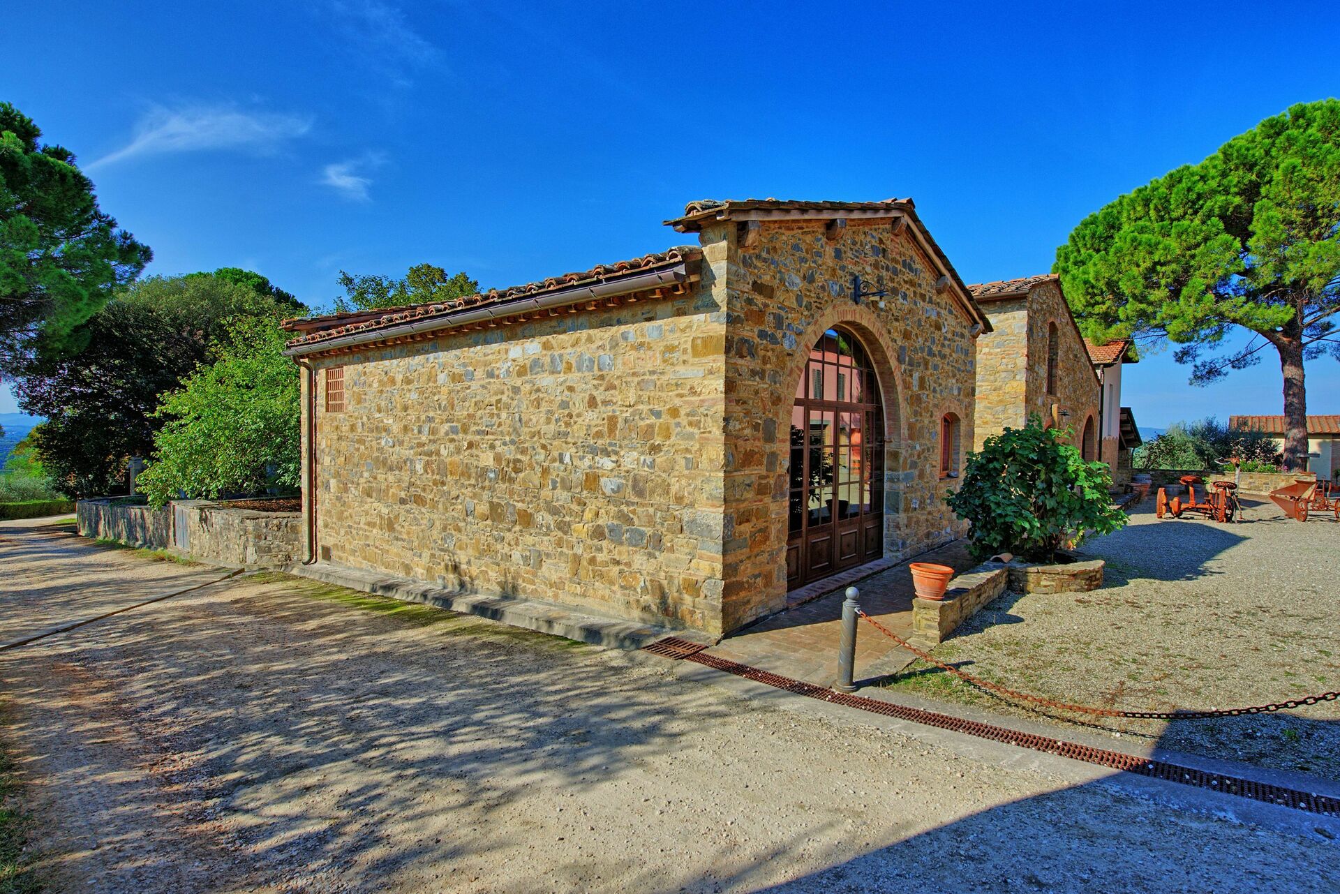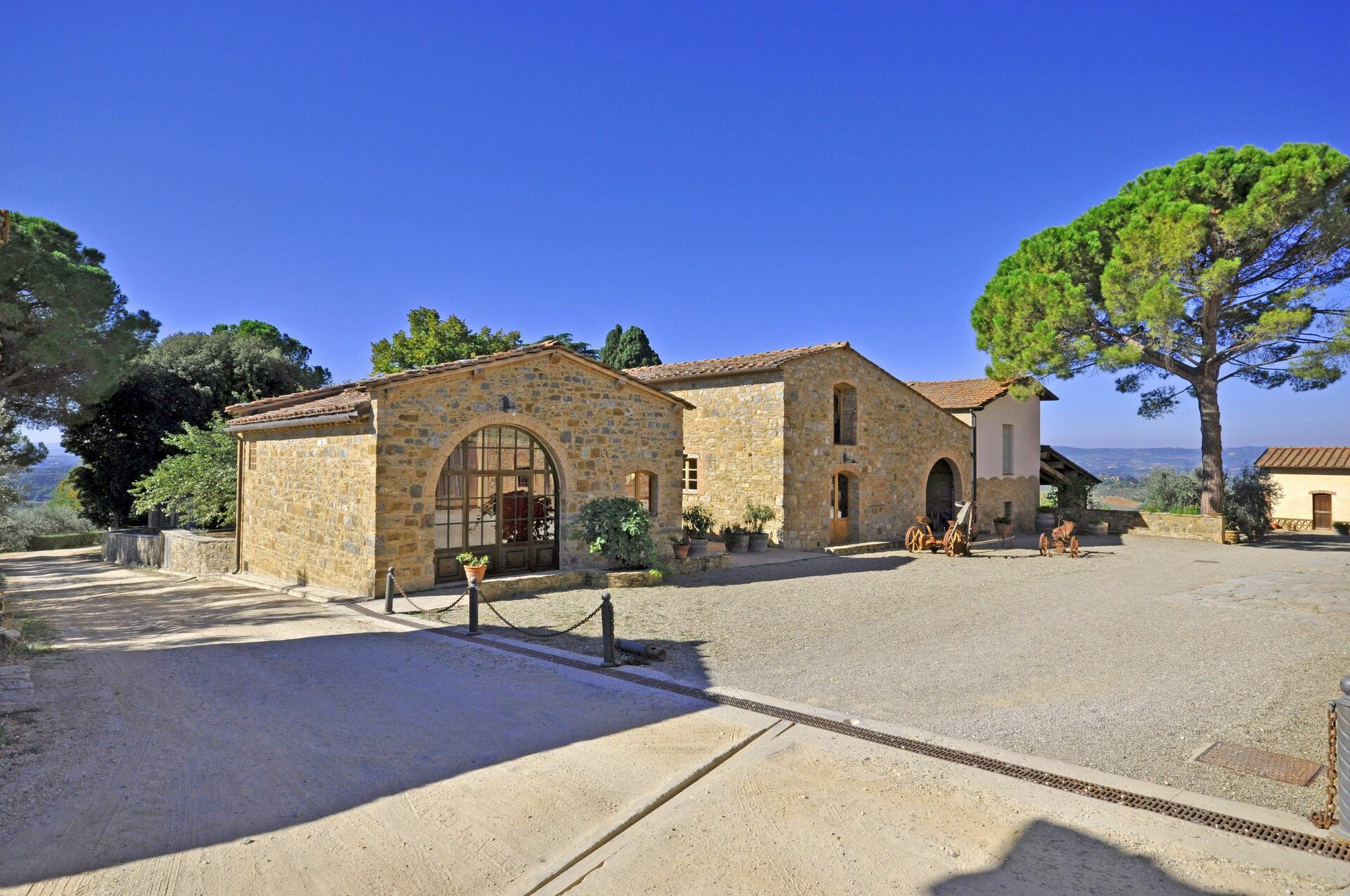 Distances: Poggibonsi with shops of all kinds 7 km, Barberino Val d’Elsa 12 km away, San Gimignano 19 km, Siena 40 km away, Volterra 41 km, the towns of Chianti are located within a radius of 25 - 50 km, Florence (airport) 42 km away, Pisa (airport) 95 km, Arezzo 110 km, Lucca 115 km away.